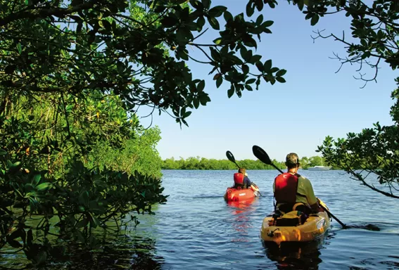• Holiday lights and moonlight paddles: The Imperial River is famous for its lighted holiday boat parade. Sure, they mean the kind for powerboaters, but a carefully placed flashlight on your bow and your stern make you as good as any spectator. The slow-moving parade each year is sponsored by the Bonita Springs Chamber of Commerce. The Estero River, another tributary to the bay, is popular among paddling clubs for nighttime outings on the Saturday closest to the full moon.