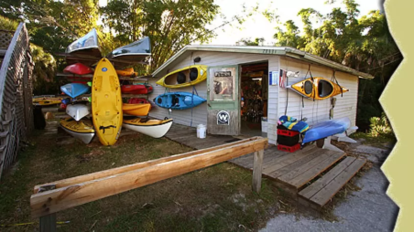 Business located directly on the  Estero River. The river offers a relaxing paddle through the historic state park on brackish, spring fed tidal waters, 4.5 miles long. Explore on your own, or book customized trip. Open year 'round.
