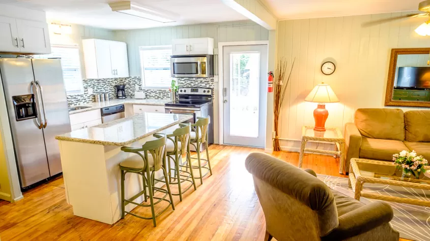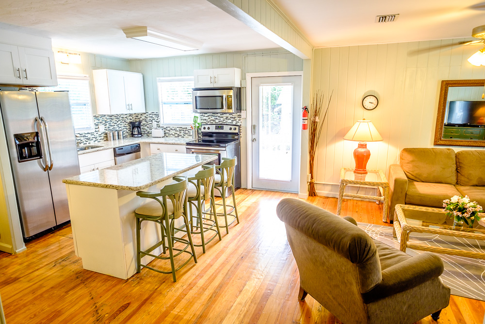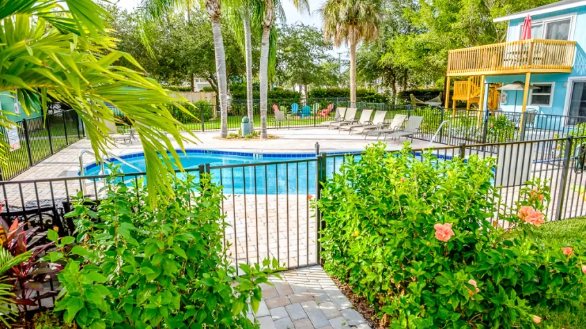 Myerside, is a pet friendly boutique hotel with apartment size suites just steps from the beach. Enjoy our heated pool, TikiHut, fire pit and volleyball court.  A King in every master and full size kitchens!  Free parking, wifi throughout, flat screen tv's, beach supplies, free access to the waterpark and Rec Center next door, where you can enjoy a fitness center, tennis and indoor sports. Restaurants and shops are all a short walk away, so park your car and relax. For any stay of 2 nights or more, get 2 free passes to either a kayak or walking tour at Fort Myers Beach Mound House. Our 1 acre property is the perfect wedding destination! Come plan your wedding with us! Let Myerside Resort and Cottages be your Fort Myers Beach vacation destination!