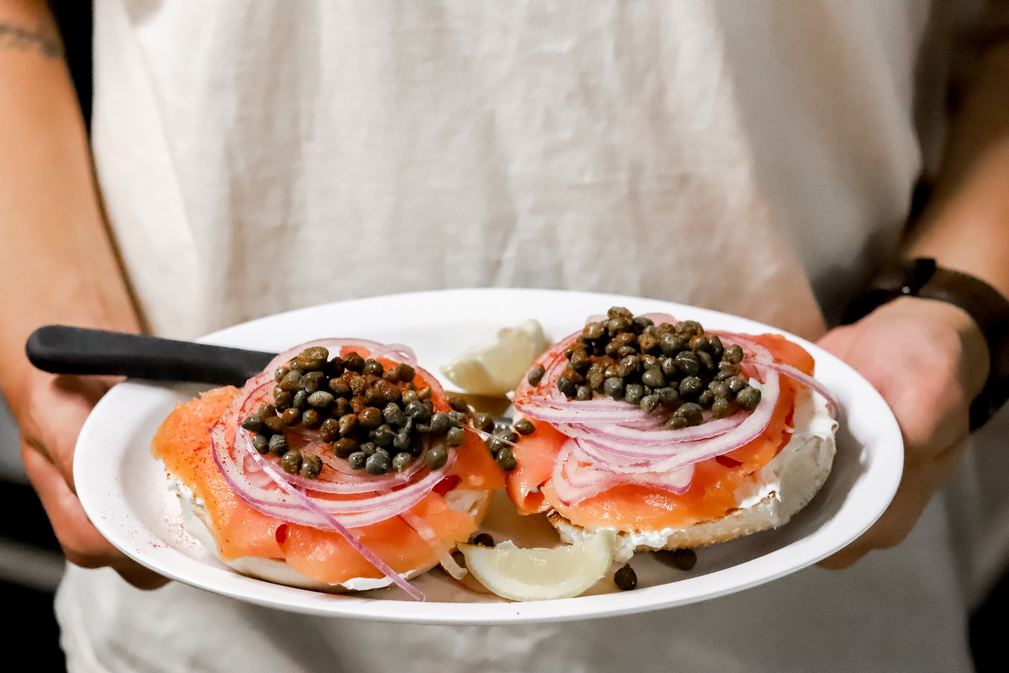 Specialty coffee roasted on premises, Saturday and Sunday Eggs Benedict. Our omelettes are huge and loaded with goodies. We use top-quality fresh ingredients and make everything from scratch...if you love Bagels with Lox, or have a hankering for a Reuben Sandwich with 1/2 lb of Corned Beef, you can get them (or anything else!) whenever we are open, breakfast and Lunch served all day.